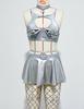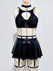 "Krajková sexy spodní prádlo: Podprsenka, pevná kožená sukně a síťované punčochy