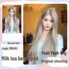 Yeye Korejská Lolita Šedá Zlatá Krajková Paruka - Dlouhé Rovné Vlasy pro Ženy