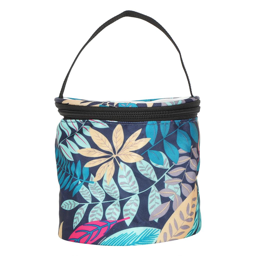 Kbelík s pytlem, vzor s listy, oxfordská látka, příze, klubko, jehla, drobnosti, dokončovací úložný nástroj, malý válec