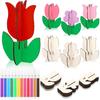 6/10/12Pcs DIY Tulip Unfinished Wooden Slices Flowers Ornaments for Painting