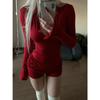 Women's V-Neck Straight Shoulder Long-Sleeve T-Shirt, 260g Rayon Modal, U-Shaped Hem, Slim Fit, Short Length