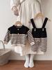 2024 Spring Unisex Baby Striped Pocket Top & Trousers Set
