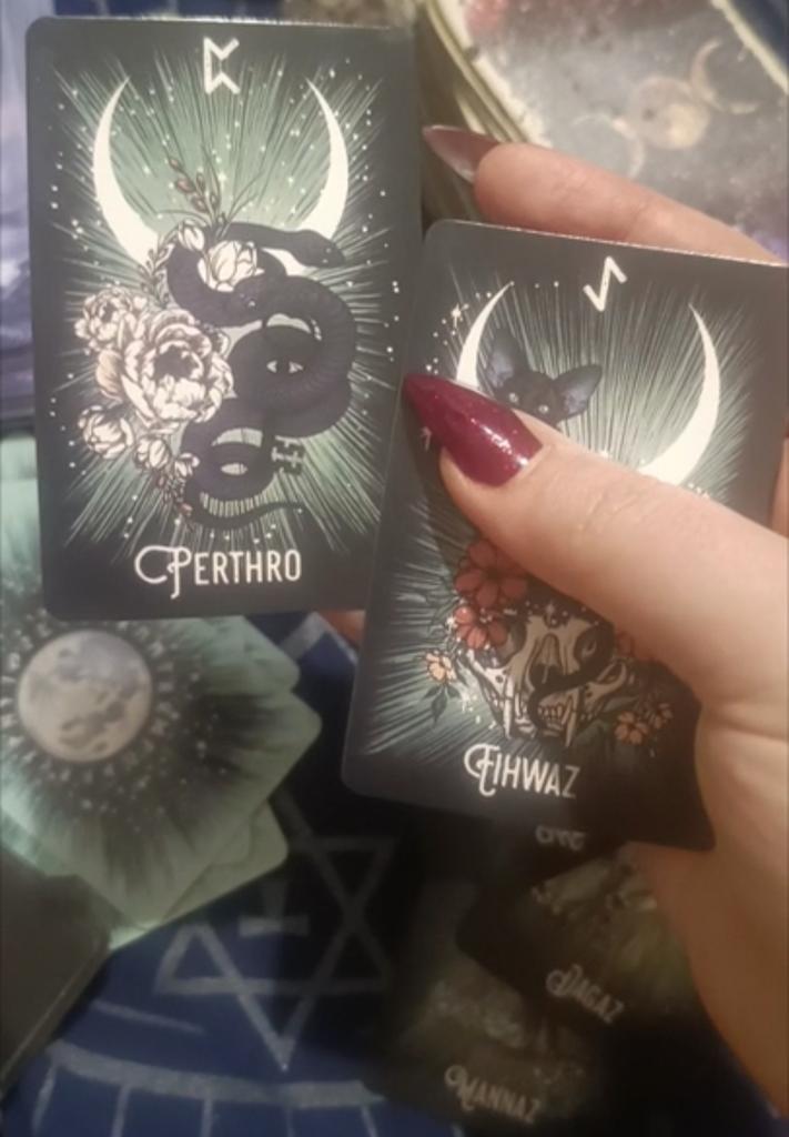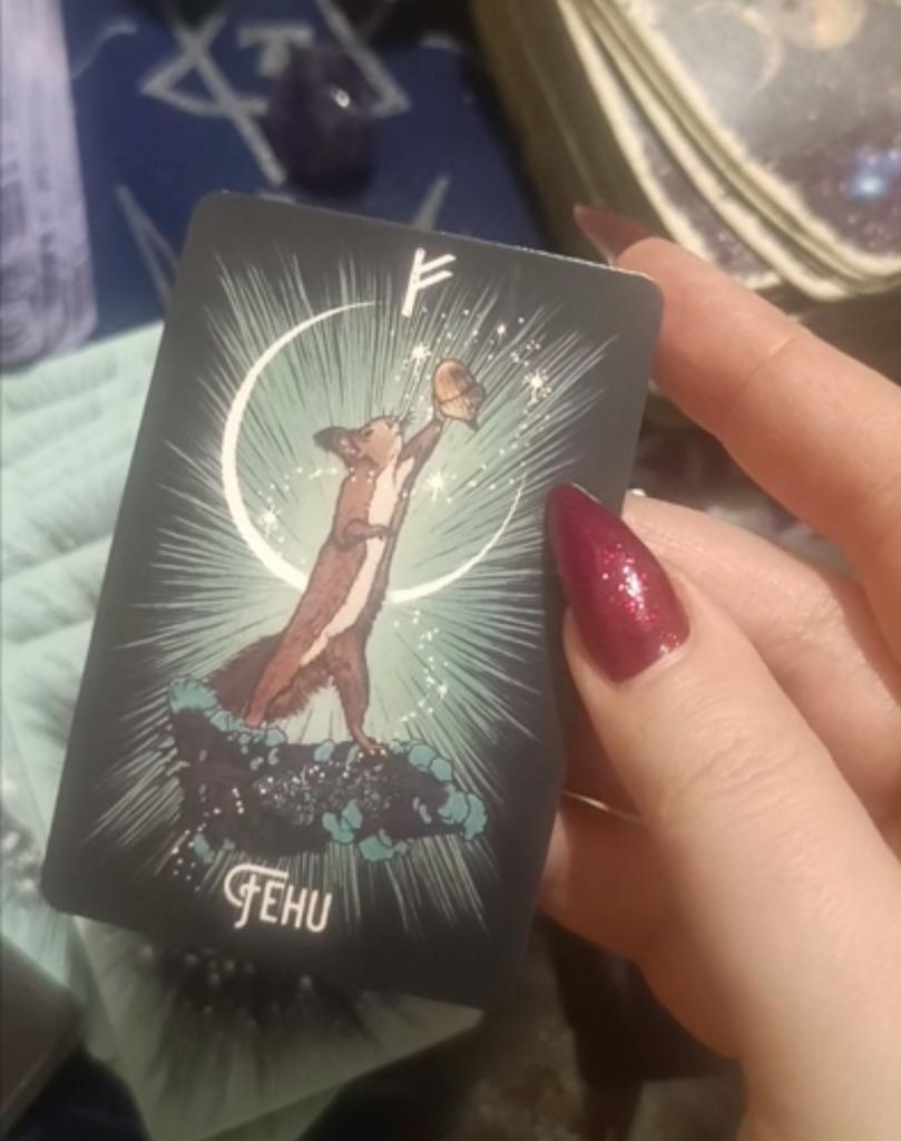 Jsou velmi malé, menší než mé nejmenší karty. Ale balíček je zajímavý, totemová zvířata se někdy zdají nevhodná. Některá zvířata mezi Vikingy nežila. Ale obraznost je podle mě živá, jsem spokojená, že jsem si je vzala.