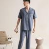Pánská bavlněná pyžamová souprava Tenká s krátkým rukávem Dlouhé kalhoty Mládež Domácí oblečení Vhodné noční oblečení Letní Pohodlné Kardigan Noční oblečení Hombre