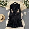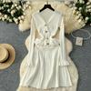 Elegant Ruffle Knit Vintage Chic V-neck Breasted Long Sleeves Slim Dresses French Office Lady High Street Autumn Winter Clothing