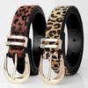Dámská móda Zlatá jehla Knoflík Leopardí vzor Pásek Vintage PU kůže Dámský pásek k džínům
