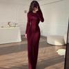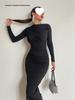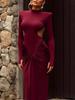 Tooxika Spring And Autumn Women's New Sexy Backless Pleated Slim Round Neck Long Sleeve Dress
