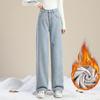 Dámské džíny s vysokým pasem, širokými nohavicemi a sametovou podšívkou pro podzim/zimu