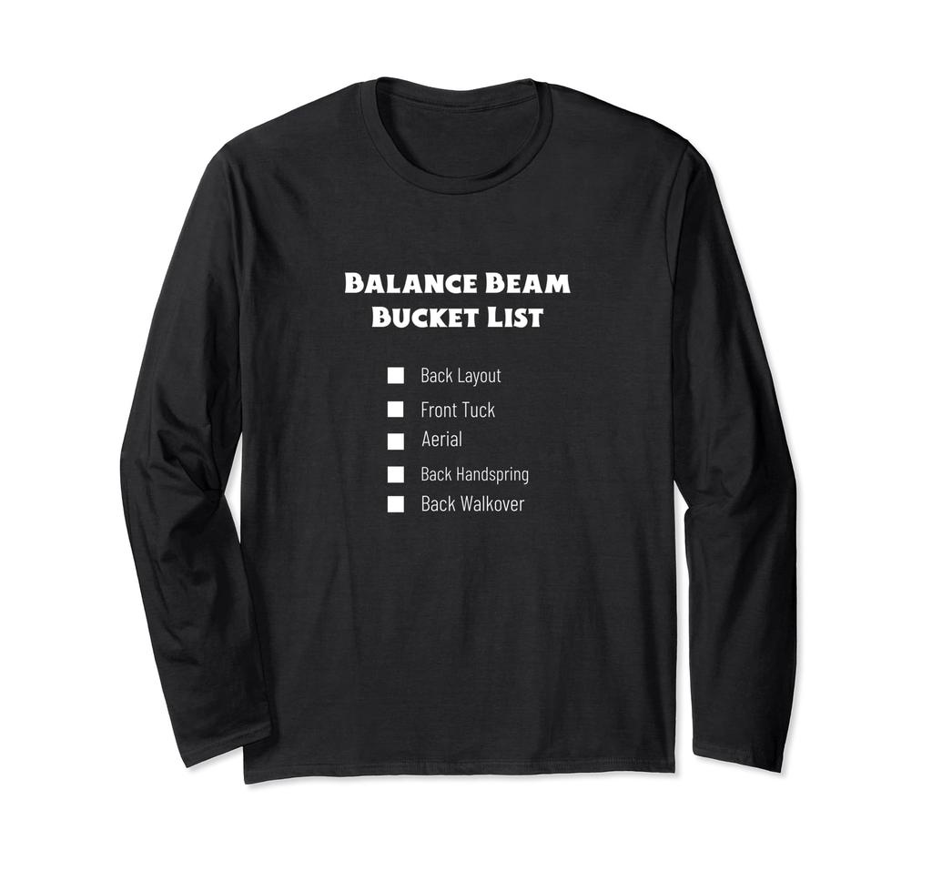 If you're a gymnast, this fun balance beam bucket list graphic design is perfect for you. Cute graphics with gymnastics designs are perfect for gymnastics enthusiasts and your favorite events: vault, uneven bars, balance beam, floor.