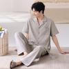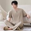 Pánské pyžamo Letní bavlněné noční prádlo Krátký rukáv a šortky Jednobarevné Ležérní domácí oblečení Kimono s V výstřihem