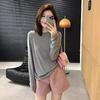 2025 spring Summer V-neck Sunscreen Thin Lazy Loose Long Sleeve T-shirts casual loose solid perspective Front and Back Double Top for Women t shirt