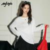 Letní dámská trička s dlouhým rukávem a potiskem mašlí pro volný čas, volná a tenká, mírně průhledná, ochranná proti slunci, bílé a černé tričko