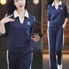 Dámská sportovní souprava ze dvou dílů slim fit - Stylová jednoduchá mikina s klopami + tepláky na jaro/podzim 2023