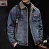 Pánská zimní retro džínová bunda v korejském stylu se silnou podšívkou z jehněčí kůže
