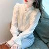 Krajková košile Dámské jarní oblečení Nový módní design košile Niche Chiffonový top s dlouhým rukávem