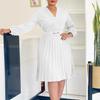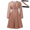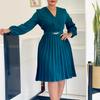 Jarní Dámské Temperamentní Módní Šaty s V výstřihem, Lisovanými Sklady a Vysokým Pasem