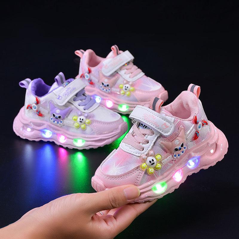 Dětské kožené boty svítí jarní dívčí kreslené ležérní lehké boty