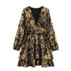 Podzim 2023 Minišaty s V výstřihem a zeštíhlujícím pasem s metalickou fólií