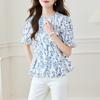 Youthful Age-reducing Temperament Short-sleeved Shirt Summer Fresh and Elegant Printed Round Neck Top