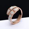 Evropský a americký titanový ocelový bílý skořápkový prsten/náramek ve tvaru hada s otevřeným diamantem - Stylové šperky z nerezové oceli