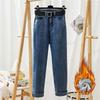 Tyto dámské teplé sametové mrkvové džíny s vysokým pasem představují vrchol pohodlí a stylu a jsou ideální pro každou příležitost.. Jsou vyrobeny ze zesílené džínoviny s měkkou bavlněnou podšívkou a slibují teplo a pohodlí v chladnějších měsících.. Design s vysokým pasem nabízí lichotivý střih, zatímco střih s rovnými nohavicemi dodává nádech moderní elegance.. Tyto sportovní džíny, ideální pro ty s aktivním životním stylem, poskytují všestrannost i módní vzhled a zajišťují, že budete vypadat šik, ať už vás den zavede kamkoli.