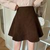 Women's Black High-Waist Corduroy A-Line Skirt - Slim Fit, Casual, Short, for Fall/Winter 2022