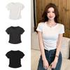 Módní dámské ležérní tričko s krátkým rukávem a kulatým výstřihem, letní novinka, jednobarevné, slim fit, elegantní, volné, jednoduché plisované crop topy, 26366