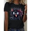 Letní kulatý výstřih s potiskem koček Módní ležérní dámské tričko s krátkým rukávem ze 100% bavlny