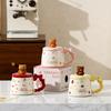 Roztomilý keramický hrnek s víčkem Studentský hrnek na snídani Kreslený hrnek s medvědem Velkokapacitní dárek Hrnek na vodu Sada pro domácnost