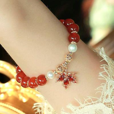 Chinese Style Beaded Bracelet For Women Girls Light Luxury Maple Leaves Pendant Bracelet Jewelry Accessories Gift