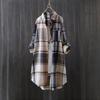 Podzimní Elegantní Ležérní Košile s Dlouhým Rukávem Dámská Korejská Móda Volné Knoflíkové Halenky Kostkovaná Bavlna Středně Dlouhé Halenky