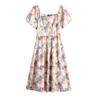 Plus Size Women's Summer New Line Neck Waist Floral Dress