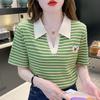 Nové letní korejské tričko s krátkým rukávem pro ženy s tahacími pásky a barevným POLO límečkem, krátký osobní top pro ženy