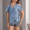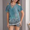 Women's Flower Print Casual Off-Shoulder Strappy V-Neck Short-Sleeved T-Shirt