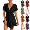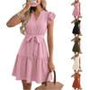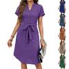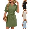 Dámské módní jednobarevné šaty s krátkým rukávem a knoflíkem s výstřihem do V