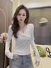 Pure Desire V-neck Slim Long Sleeve T-shirt for Women In Women's Autumn New Slim and Hot Girls' Chic Student Top Women's Clothing