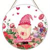 Valentine's Day Gnome květinová láska Dřevěná cedule Růžová a červená růže Květinové srdce Gnome Rustikální cedule 14. února Valentýna Cedule na kulaté dveře