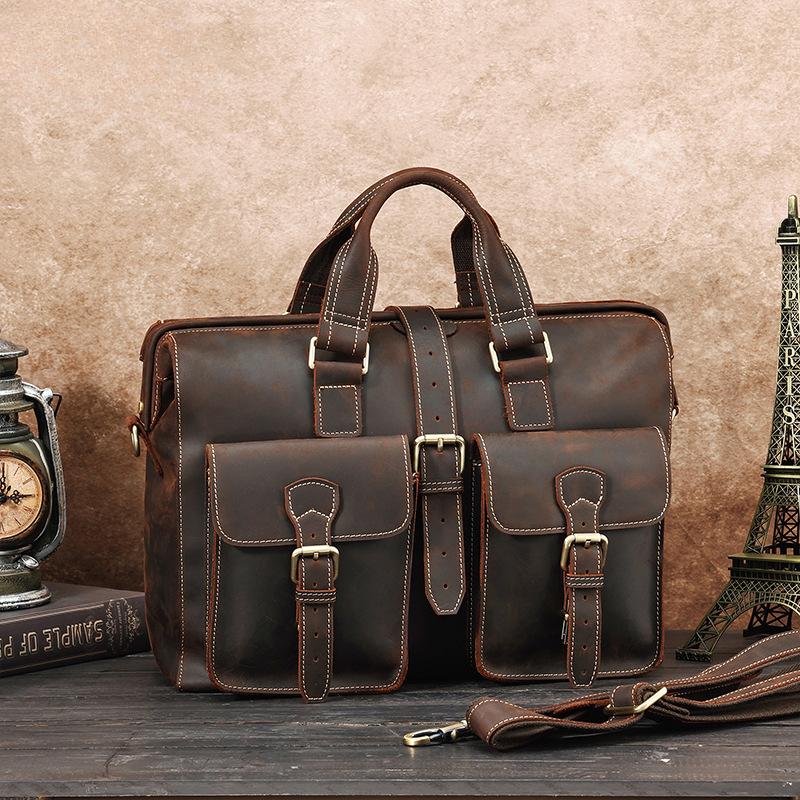 Originální kožená aktovka Pánská velkokapacitní počítačová taška na jedno rameno Mad Horse Kožená Vintage Pánská obchodní taška do ruky