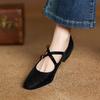 Krazing Pot Cow Skin Spring Summer Size 43 Size 42 Size 41 Thick Med Heels Women Square Toe Leisure Leopard Pumps