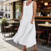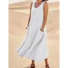 Women Casual Summer Plus Size Cotton Linen Dresses Plain Loose Round Neck Pocket Sleeveless Long Dress