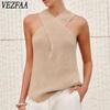 VEZFAA Dámská móda Ležérní podzim Zima Jednobarevné svetry bez rukávů s výstřihem do V