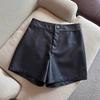 Women's High-Waist PU Leather Wide-Leg Shorts - Korean Style, Autumn/Winter Casual Wear