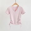 Women's Quick-Dry V-Neck Yoga and Pilates Short-Sleeve Slimming Tops for Spring/Summer Fitness and Running