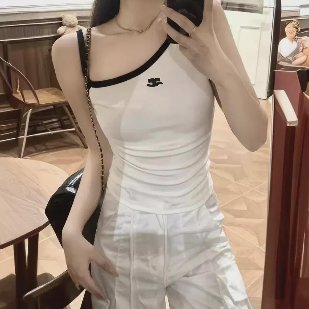 Americká retro vyšívaná slim vesta bez rukávů s odhalenými rameny