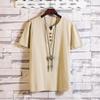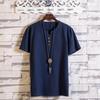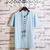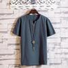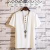 Pánské retro lněné tričko s V-výstřihem pro volný čas na léto