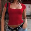 Léto Ženy Y2K Jednobarevné Dámské tričko s výstřihem do U Sexy štíhlý Zobrazující výstřih s krátkým rukávem