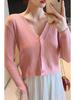 Jemně růžový kardigan s dlouhým rukávem a zapínáním na knoflíky z Dongdaemunu