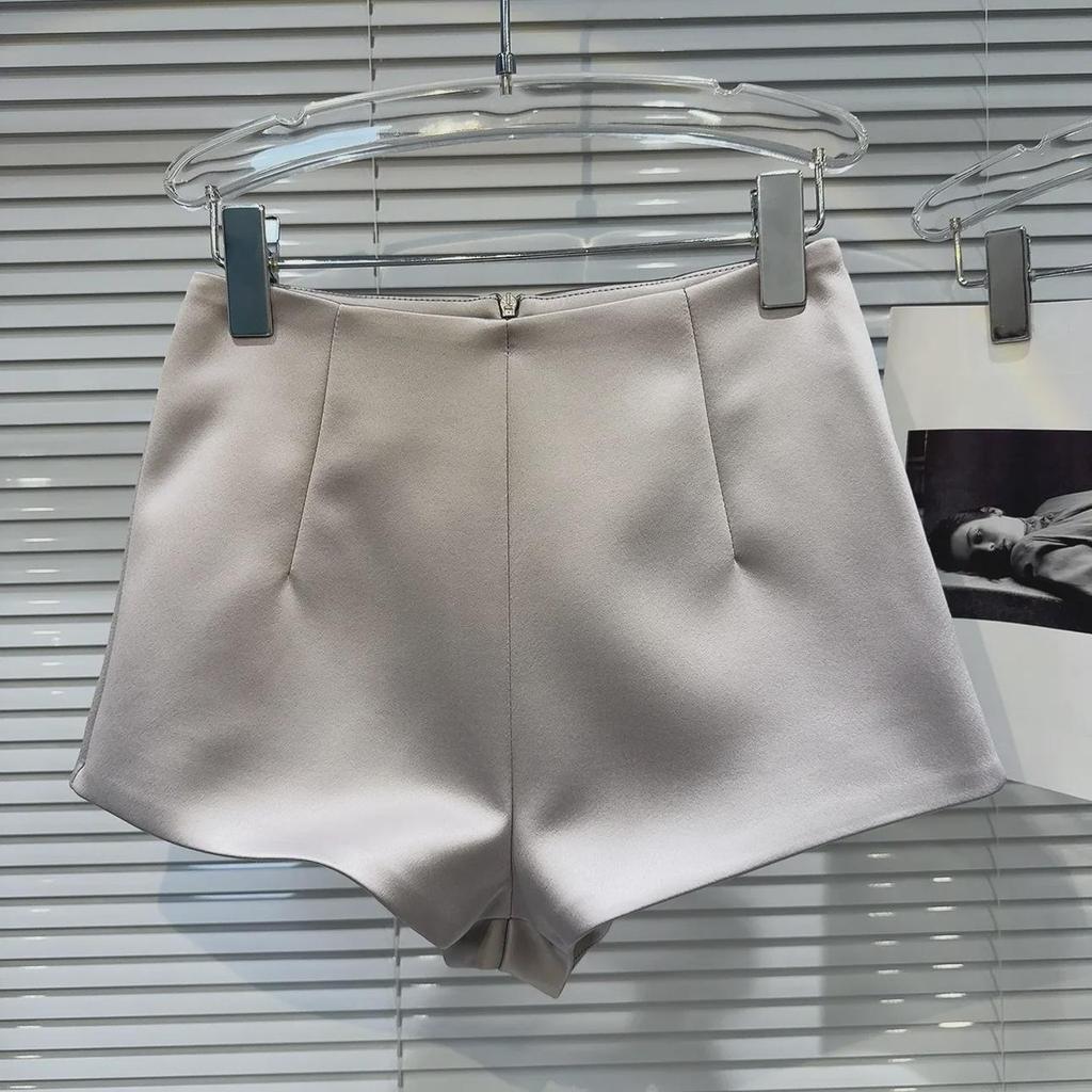 2024 Jaro Korejsko-Francouzský Styl Šortky A-Střihu s Vysokým Pasem ze Saténu