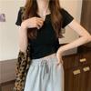 Malý výstřih do V Krátký design Štíhlý body pro ženy V létě Odhalené břicho Jednobarevné Krátký rukáv T-shirt pro ženy