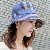 Dámský korejský styl Módní Všestranný kostkovaný klobouk s malou krempou Populární japonský rybářský klobouk Britský cylindr